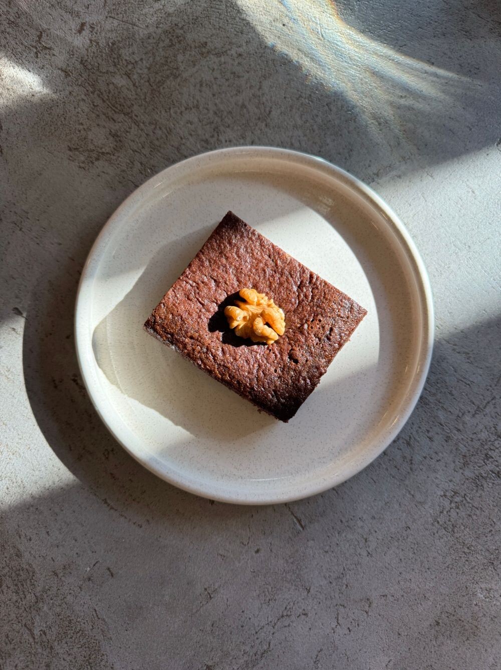 Шоколадное, мягкое, немного тягучее пирожное. Веган. Без глютена.